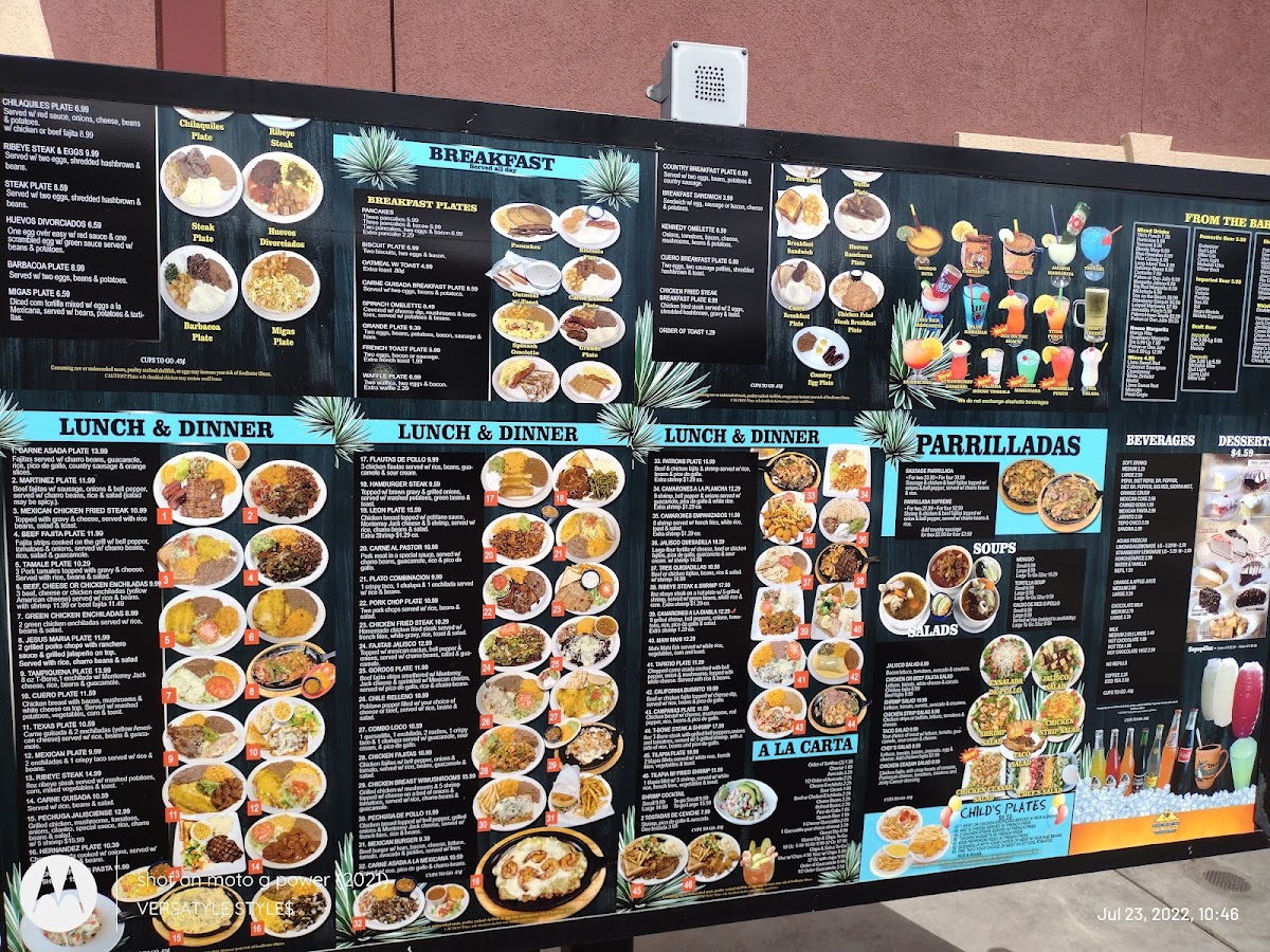 Start with shareable bites such as crispy Onion Rings or the loaded Jalisco Fries, perfect for easing into the warm, spirited atmosphere. Soups like Tortilla Soup and the rich Caldo De Mariscos 7 Mares offer soothing, authentic flavors for cool afternoons or evenings. For those who prefer refreshing drinks, options like the tangy Limonada Lemonade and the fruity Mango Margarita complement the bold, home-style dishes well.